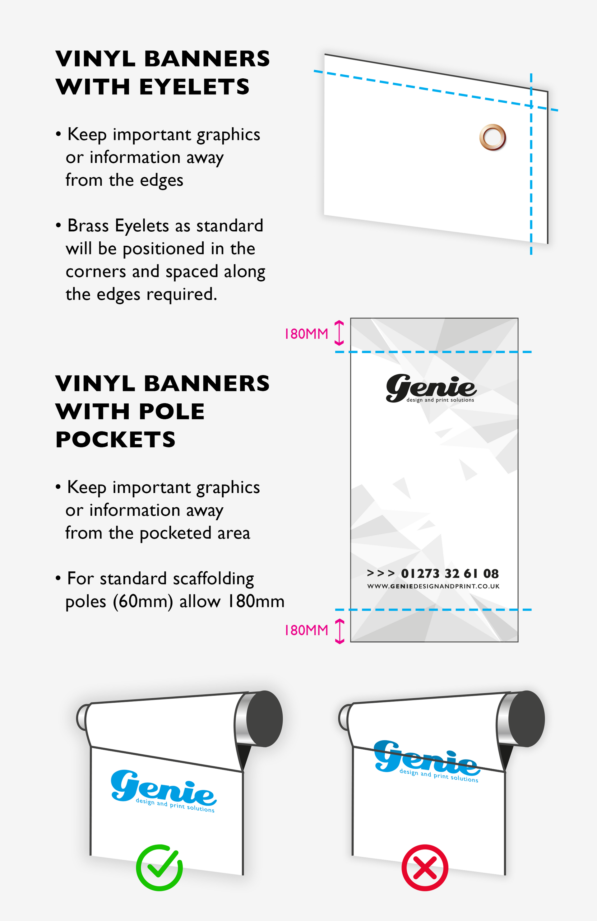 - with pole pockets - perfect for hanging on scaffolding or lamp posts. For banners with pole pockets, please provide your artwork to scale, with 3mm bleed all around.