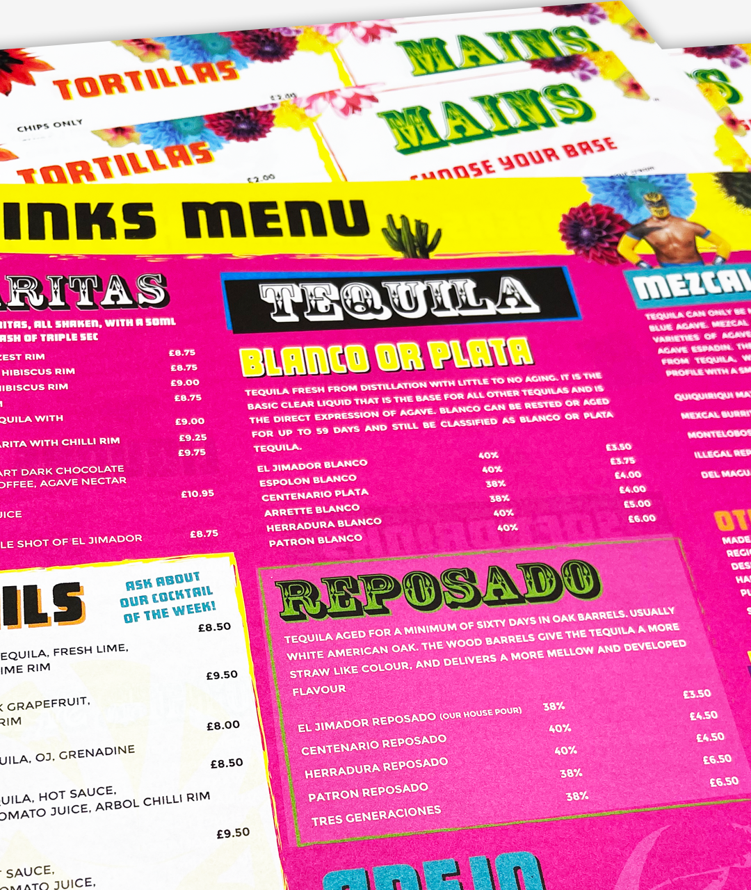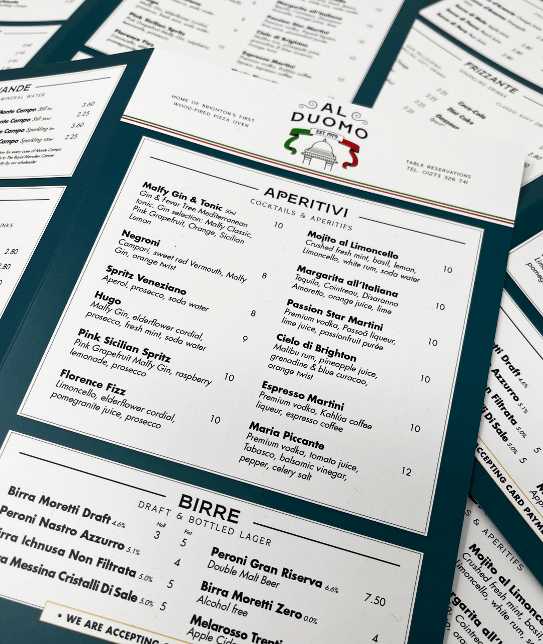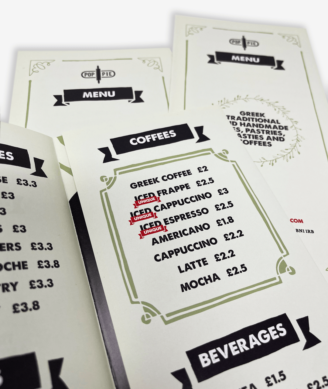At Genie we can print a range of menus and bespoke items for restaurants, bars, pubs, cafes, hotels, pop up shops and events.