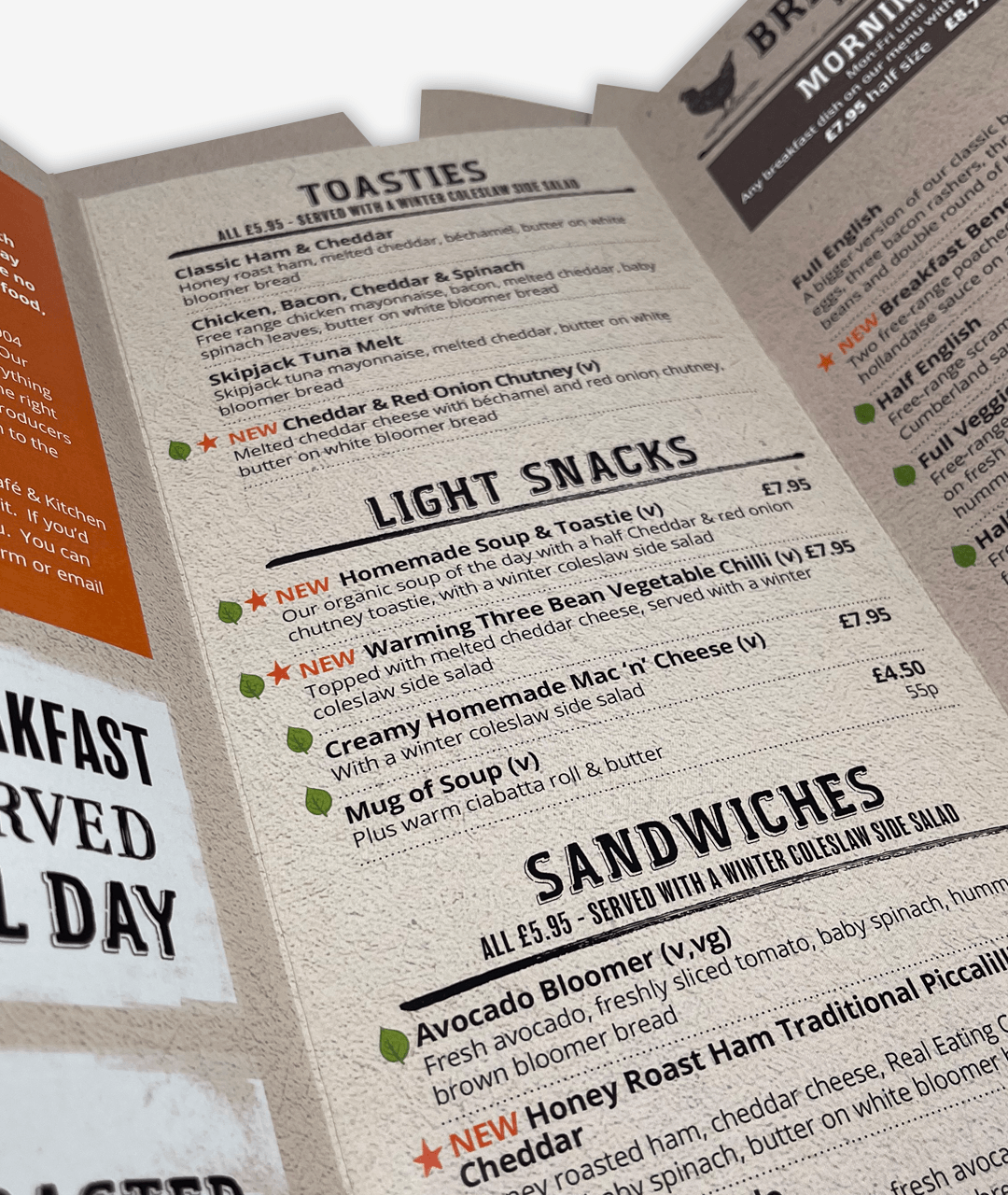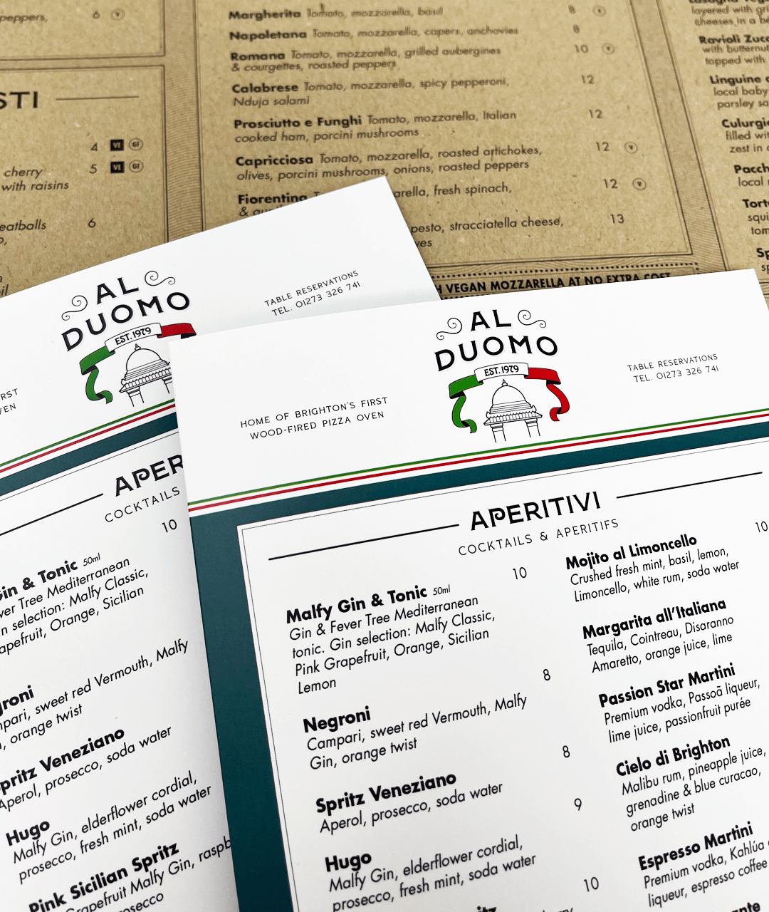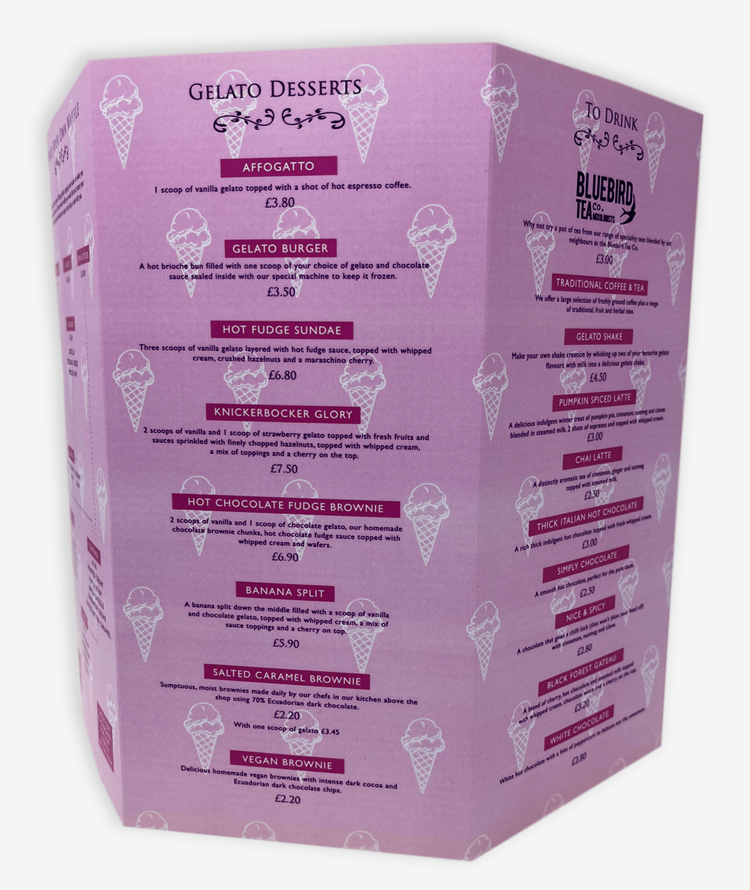 At Genie we can print a range of menus and bespoke items for restaurants, bars, pubs, cafes, hotels, pop up shops and events.