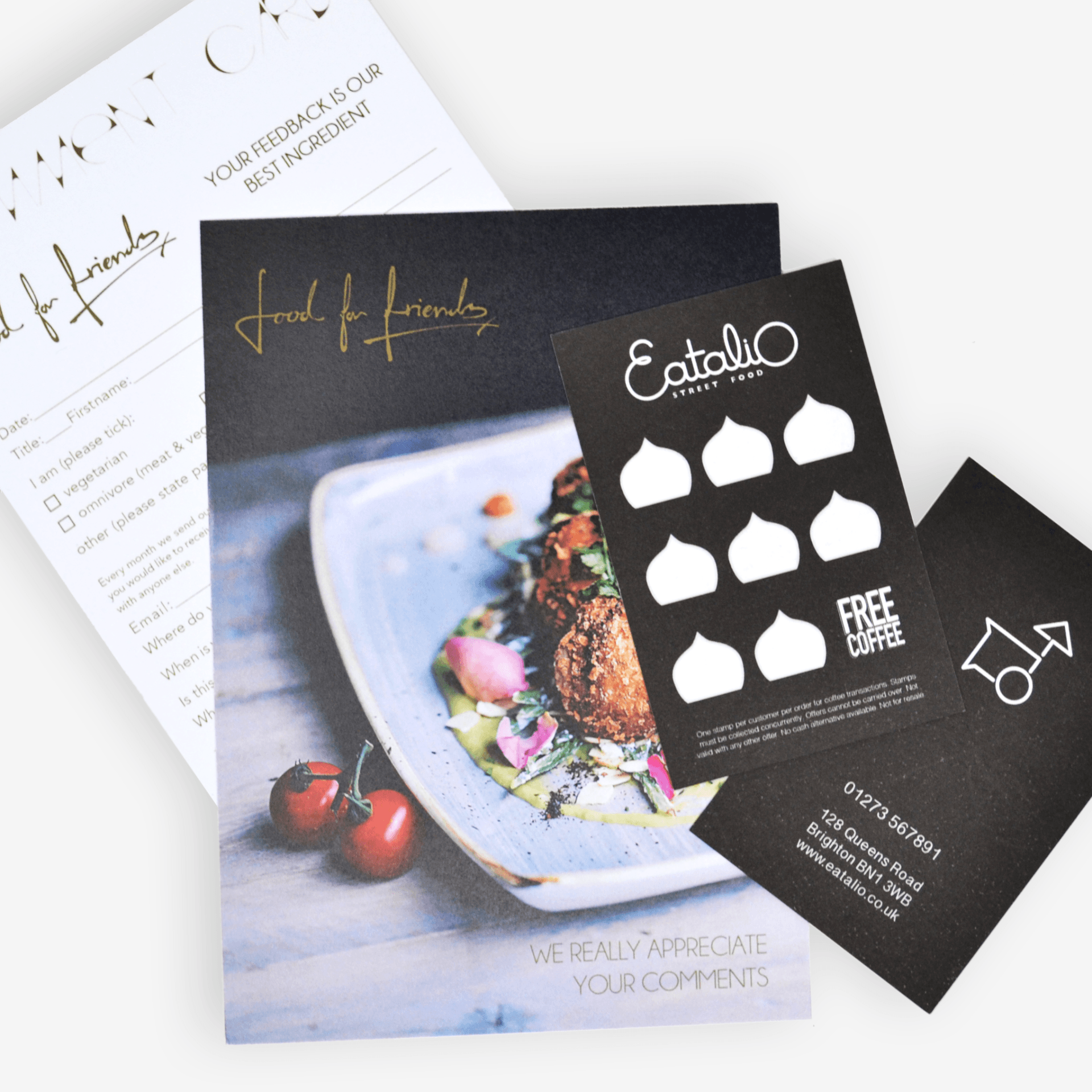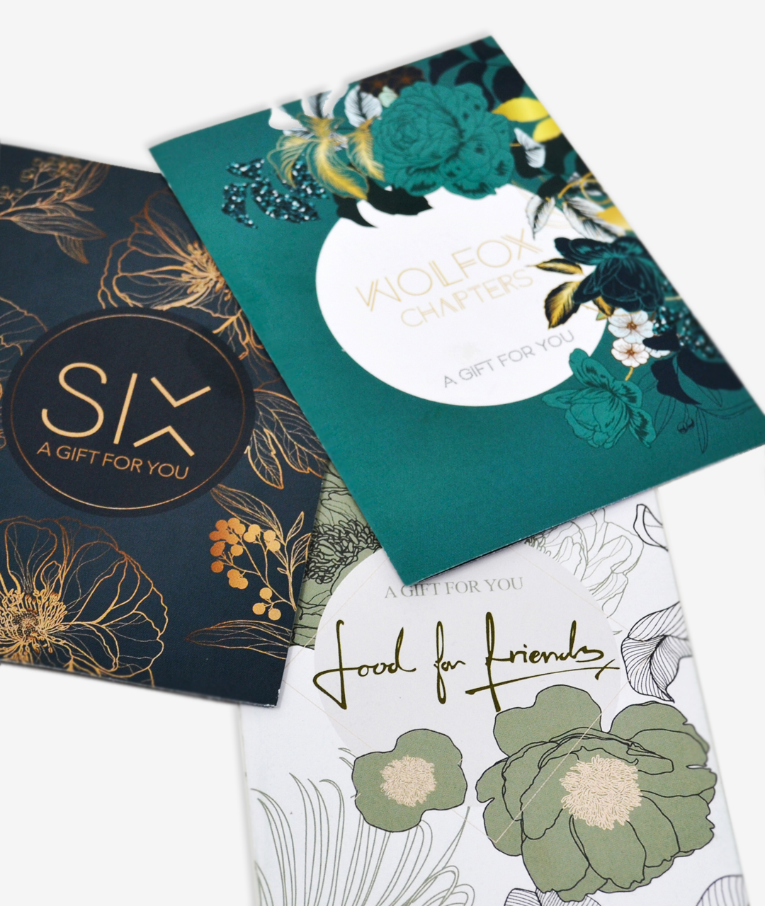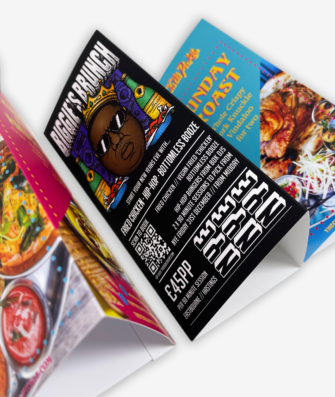 Available to suit every budget, we can provide custom sizes either flat, folded or staple bound. We can print on to a variety of materials ranging from 100% recyclable single use items, to solutions with special finishes such as a foil - to add that luxury element to your print.
